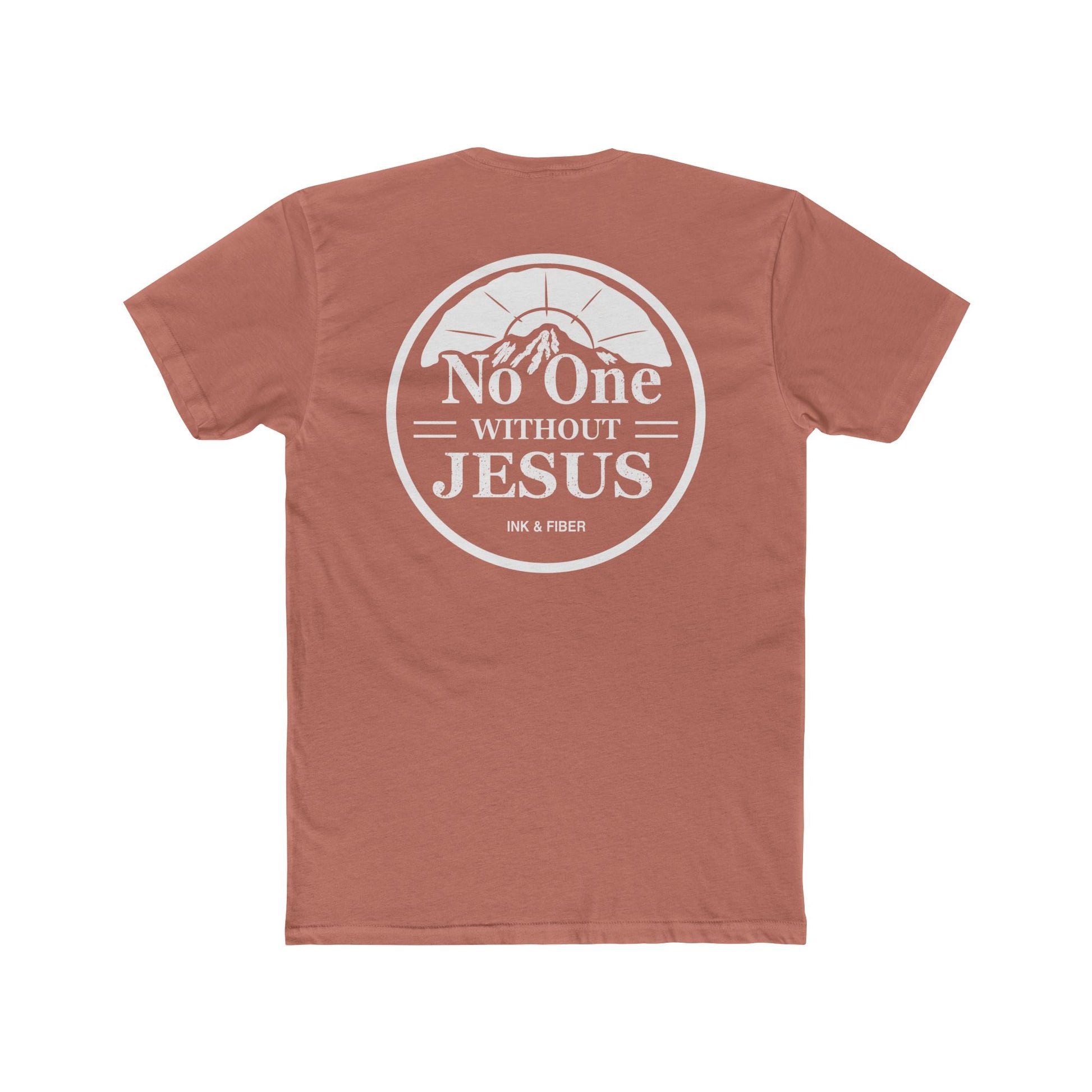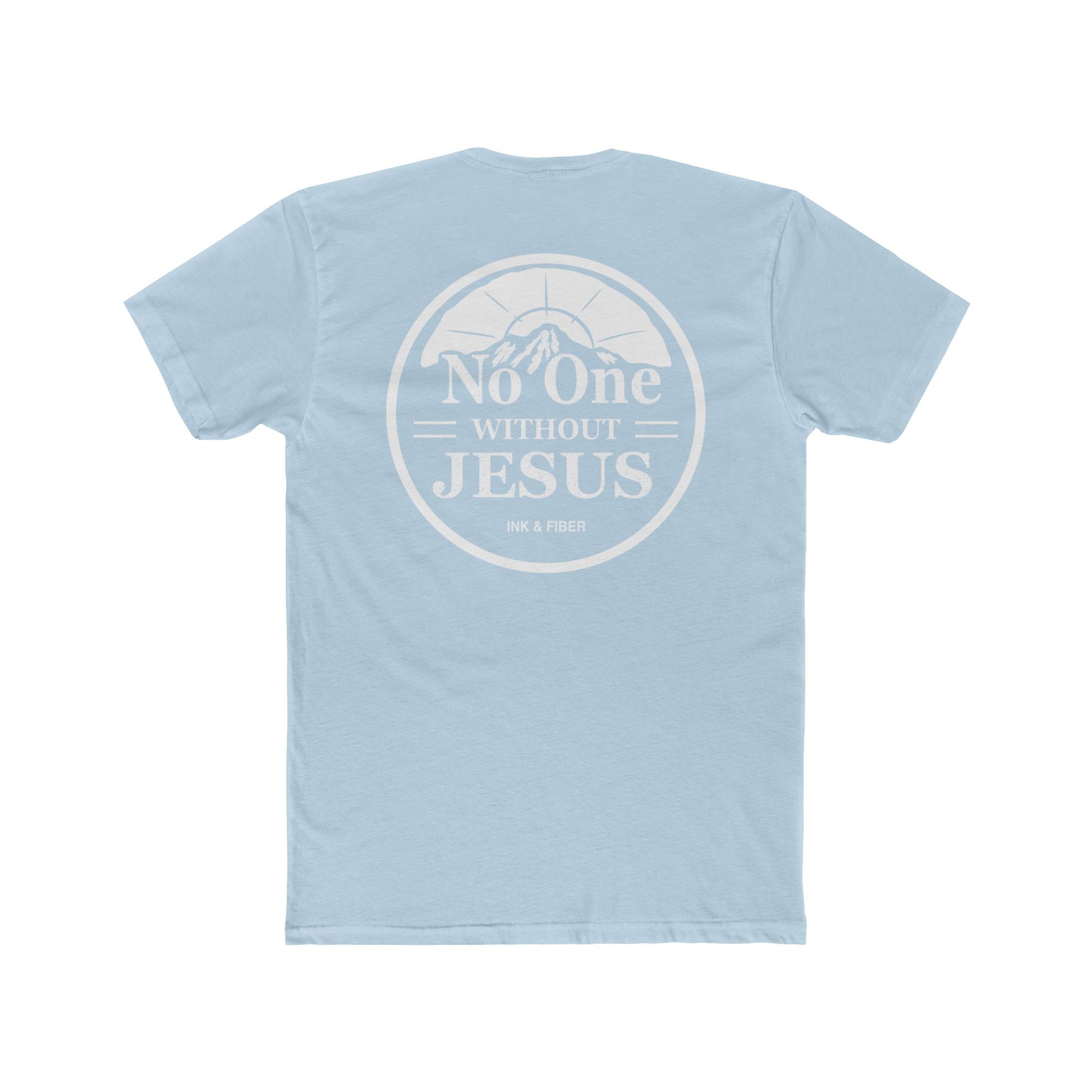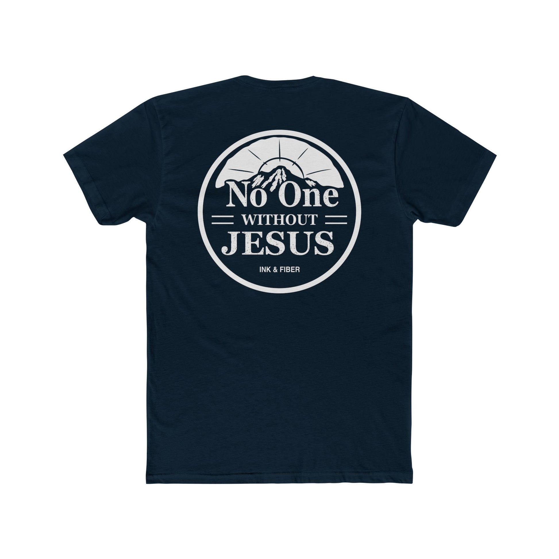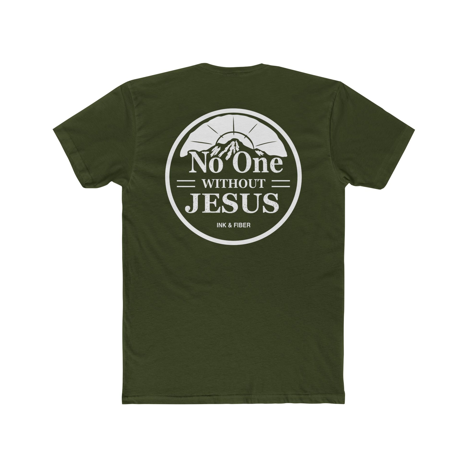 Featuring a clean, impactful message — No One Without Jesus — printed on the back, this unisex cotton crew tee is a powerful expression of purpose and identity. With a classic silhouette and a grounded design, it’s perfect for Sunday gatherings, everyday witness, or simply staying rooted in truth.